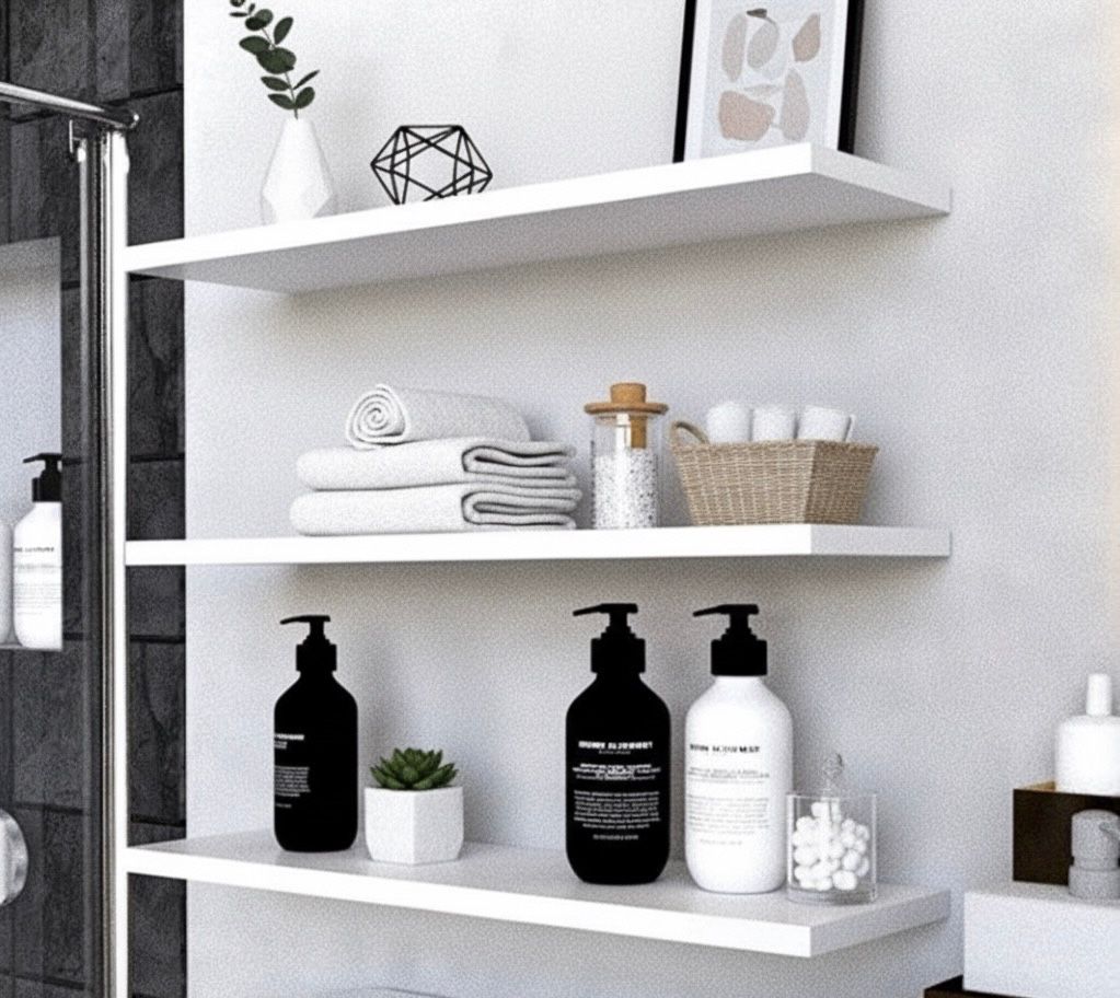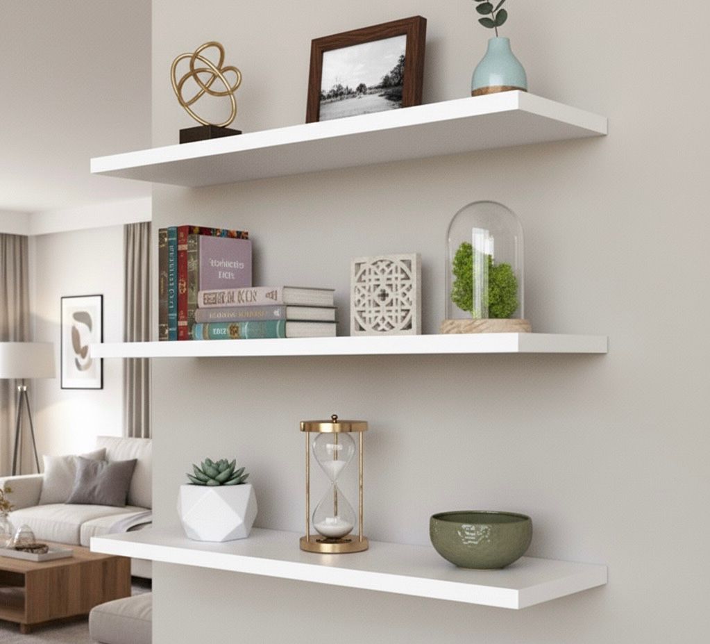 Juego de 3 repisas flotantes en RH chapillado blanco, ideales para sala, baño, cocina u oficina.